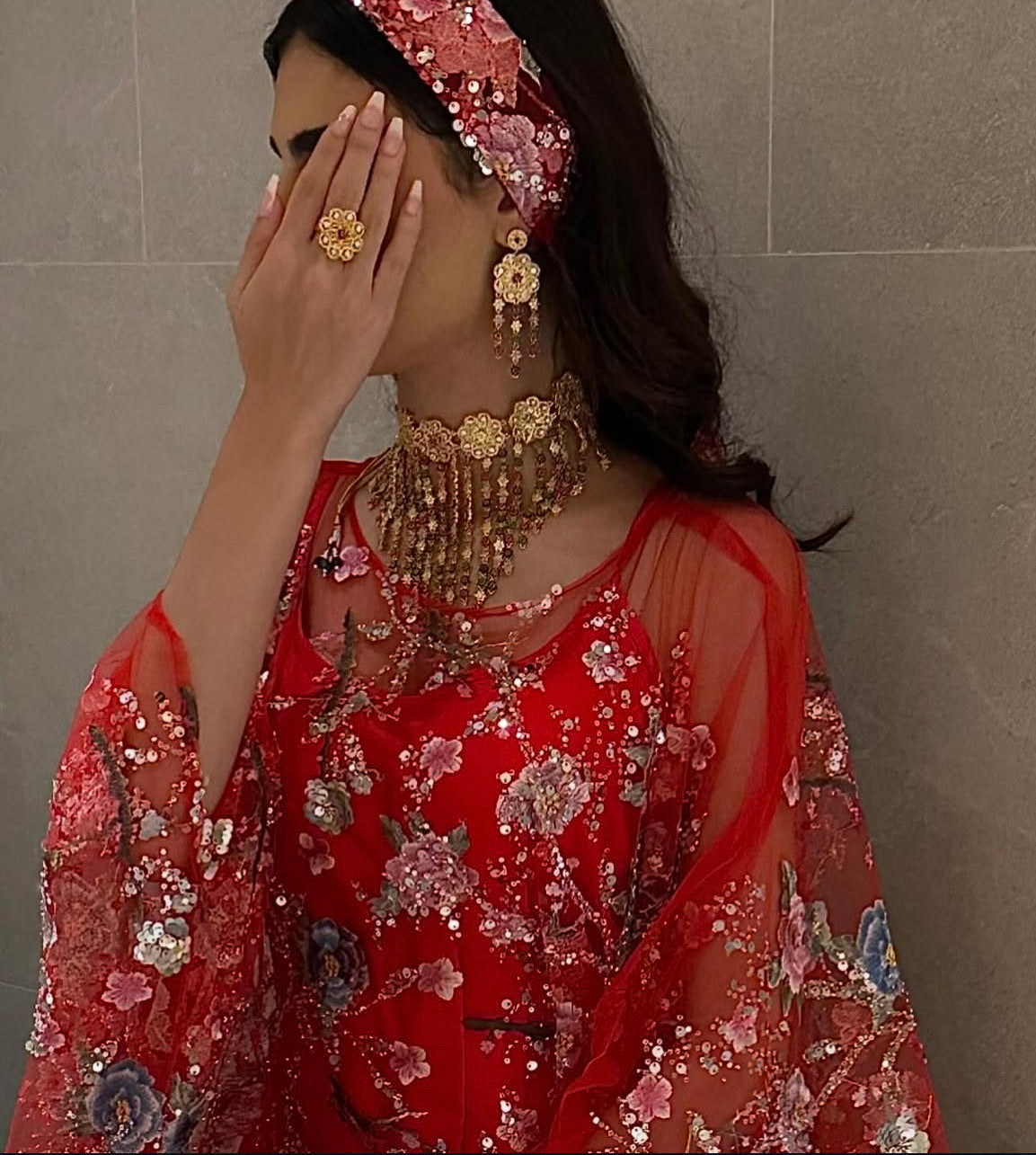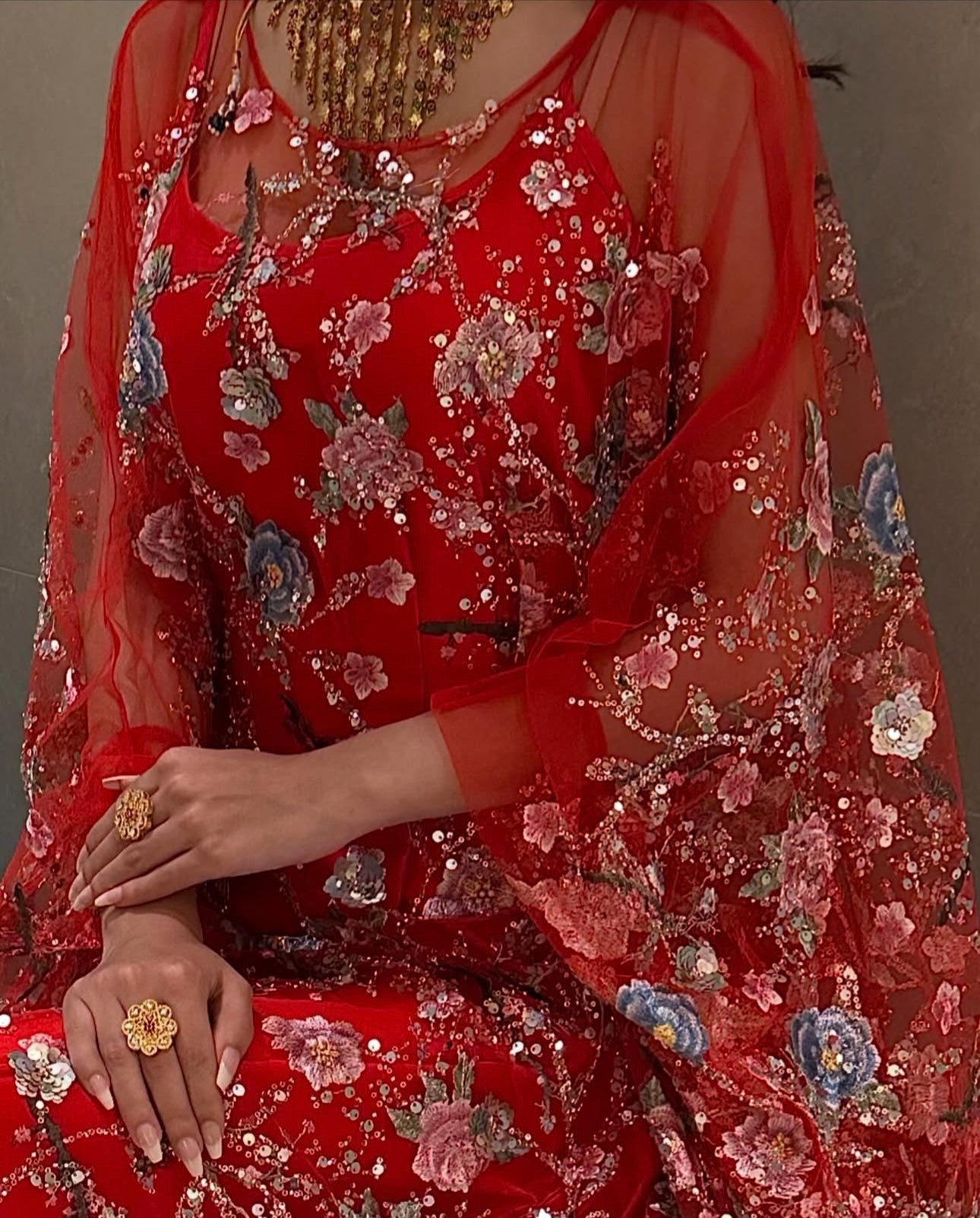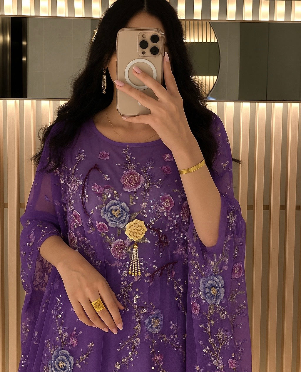 Crafted from delicate Chiffon , adorned with intricate embroidery and finished with a soft inner lining for graceful comfort